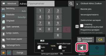 Plaats het origineel in de documentinvoerlade van de automatische documentinvoereenheid of op de glasplaat.Tik op de toets [Luidspreker].