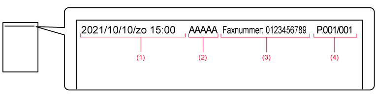 tijd, naam afzender, faxnummer afzender of naam bestemming, aantal