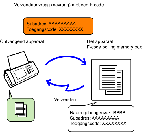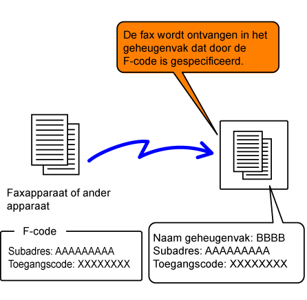 een fax die op het andere apparaat in een geheugenvak met F-code