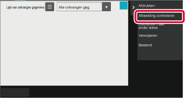 Tik op de toets van de ontvangen gegevens die u wilt controleren en tik vervolgens op [Afbeelding controleren] in het actiepaneel.
