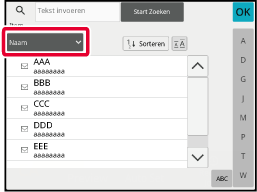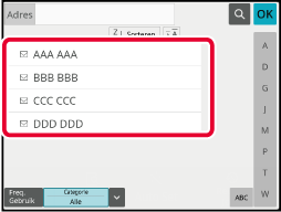 Als u het adresboek gebruikt in het scherm van eenvoudige