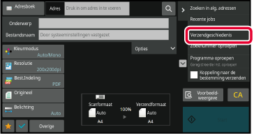 u een bestemming in het verzendlogboek wilt selecteren, tikt u op