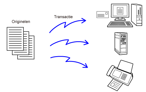 één bewerking naar meerdere bestemmingen van scan-, internetfax-
