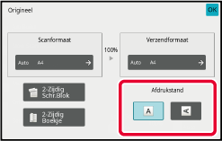Geef de afdrukstand op van het origineel dat u in stap 1 hebt geplaatst.Tik op de toets [Z/W Start] of [Kleur Start] om het scannen van het origineel te starten.