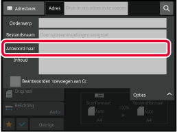 Tik op de toets die u wilt gebruiken voor het antwoordadres.