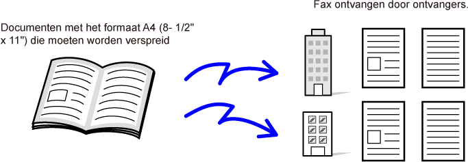 Voer het adres van elk filiaal in. ![]() Selecteer Dubbele Pg Scannen. ![]() Geef Wissen op. ![]() Tik op de toets [Start]. Scan en verzend het origineel. |
