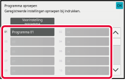 Plaats het origineel op basis van de opgeslagen functie in het programma in de documentinvoerlade van de automatische documentinvoereenheid of op de glasplaat.Tik op de gewenste programmatoets.