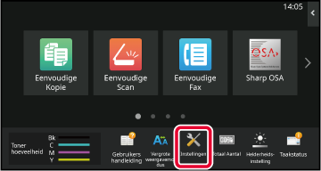 Het scherm van de instellingsmodus wordt op het aanraakscherm