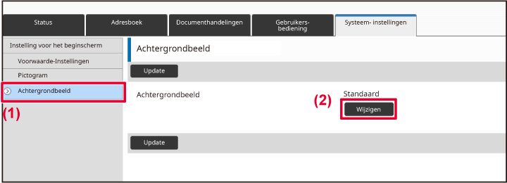 Klik in het instellingenmenu op [Achtergrondbeeld] en selecteer de achtergrondafbeelding.