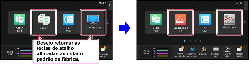 Innstillingene lagres i maskinen og tas i bruk.Hvis du vil endre bildet for en snarveistast