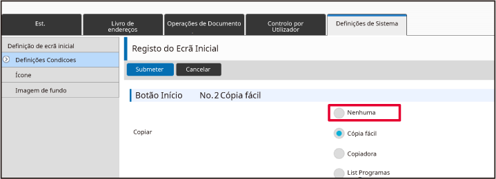 Enkelte innstillinger kan kreve at du angir brukerpassordet ditt etter å ha klikket på [Innst. Startskjerm]. Hvis du ikke utførte brukerautentisering, må du angi administratorpassordet.Klikk på [Ikon].