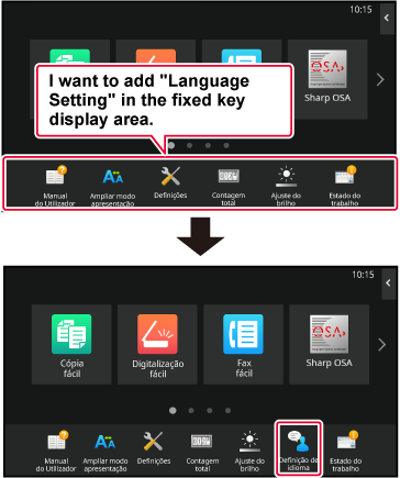 Snarveistasten flyttes til plasseringen du trykket på.Når du har fullført innstillingene, trykker du på [Logg ut]-tasten.