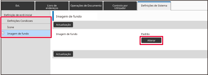 Skjermen endres til innstillingsskjermen.Trykk på [System- innstillinger] → [Innst. Startskjerm] → [Bakgrunnsbilde], og deretter trykker du på [Forandre]-tasten.