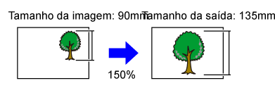 Når du for eksempel angir 90 mm som kildestørrelse og 135