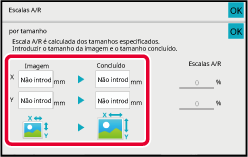 Trykk på området for bildestørrelse og utmatingsstørrelse, og angi størrelsene med talltastene.Dette avsnittet forklarer hvordan du kan