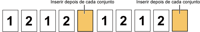 Sorterer den skannede originalen side for side, og skriver dem ut. Eksempel: Når fem er angitt for antall kopier ved gruppering ![]() |