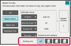 En linje kan settes inn mellom sider som er arrangerte på et ark.Trykk på [Farge Start]- eller [S/H Start]-tasten for å begynne å kopiere.
