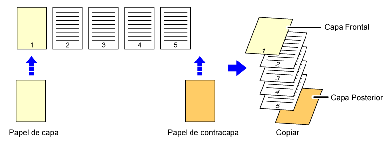 ![]() Setter inn omslagsark i begynnelsen og slutten av kopiene. |