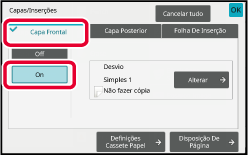 Når du legger inn et baksideomslag, trykk på [Bakside]-fanen, og deretter på [On]-tasten.Trykk på [Forandre]-tasten.