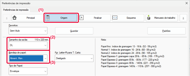 Når "Original størrelse" settes til konvolutt i [Hoved]-fanen