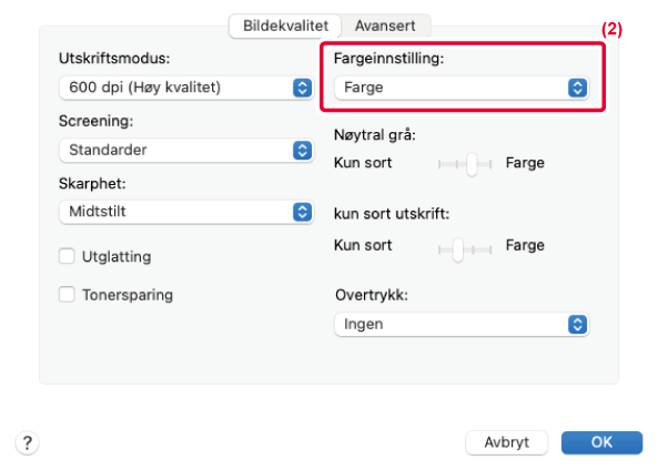 Alle sidene skrives ut i svart-hvitt. Fargedata som bilder eller presentasjonsmaterialer skrives ut med bare den svarte toneren. Med denne modusen kan du spare fargetoner når du ikke har bruk for fargeutskrift, for eksempel ved korrektur eller kontroll av layouten til et dokument. |