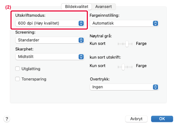 Velg denne modusen for å skrive ut fargebilder med høyere oppløsning og for å skrive ut fine linjer tydeligere. |