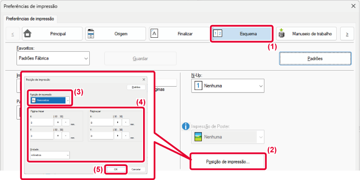 in ulike utskriftsposisjoner (marginer) separat for oddetalls- og