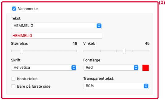 - Klikk på [Vannmerke]-avmerkingsboksen og konfigurer vannmerkeinnstillingene.