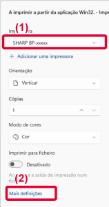 Knappen som åpner vinduet med egenskaper for skriverdriveren