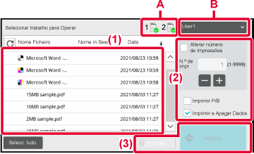utskriftsjobbene som tilhører den påloggede brukeren.
