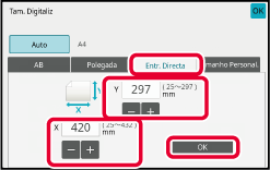 Trykk på områdene som viser bredde og høyde, og angi størrelse ved hjelp av talltastene.Trykk på [OK]-tasten.