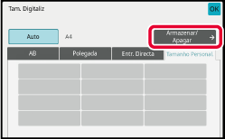 Trykk på [Skannestørelse]-tasten, etterfulgt av [Egendef.format]-fanen.