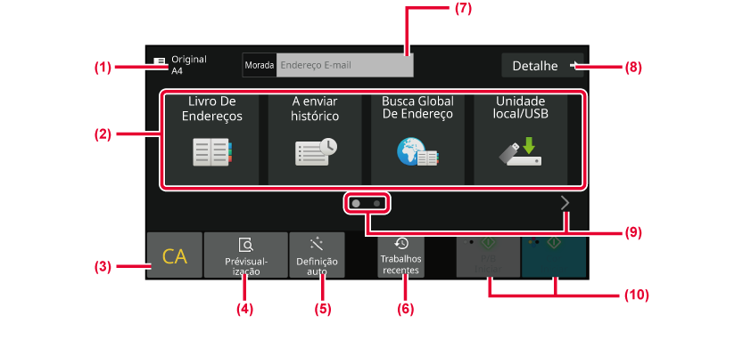 Denne delen forklarer tastene på en startskjerm, f.eks. E-poststartskjermen.
