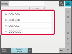 Når du bruker adresseboken i skjermbildet for enkel skanning
