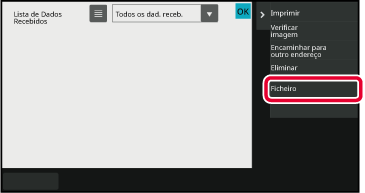 De mottatte dataene er oppført.Trykk på tasten for de mottatte dataene du vil lagre, og trykk deretter på [Fil]-tasten på handlingspanelet.