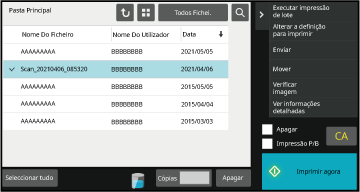 Når mappen velges, vil filene i mappen vises. Velg filen du vil hente frem.Velg et operasjonselement.