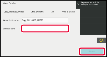 Hvis du trykker på en mappe med passord, vises en passordskjerm.Trykk på [Flytt]-tasten.