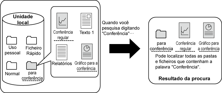 Det er også mulig å søke når du bare kjenner en del av fil- eller mappenavnet. Om nødvendig kan en mappe spesifiseres som et søkeområde.