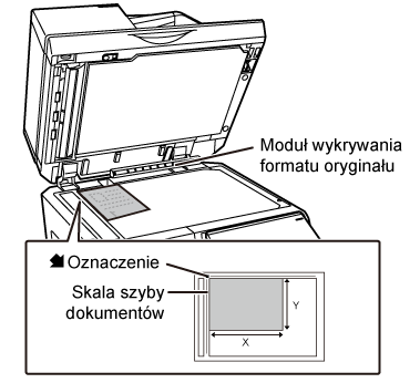 Nie umieszczaj żadnych przedmiotów pod modułem wykrywania formatu oryginału.Zamknij automatyczny podajnik dokumentów.