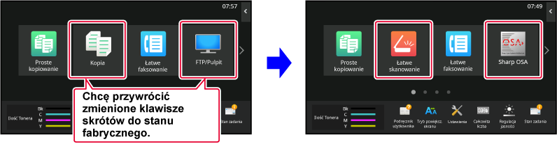 Przywrócony zostanie domyślny stan przycisków skrótu.Po wprowadzeniu ustawień naciśnij przycisk [Wyloguj się].