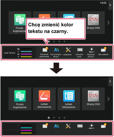 Otwórz panel sterowania ekranu głównego i naciśnij [Zmień kolor tekstu w oknie Home].