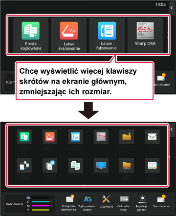 dzięki czemu na ekranie mieści się więcej przycisków skrótów. Układ