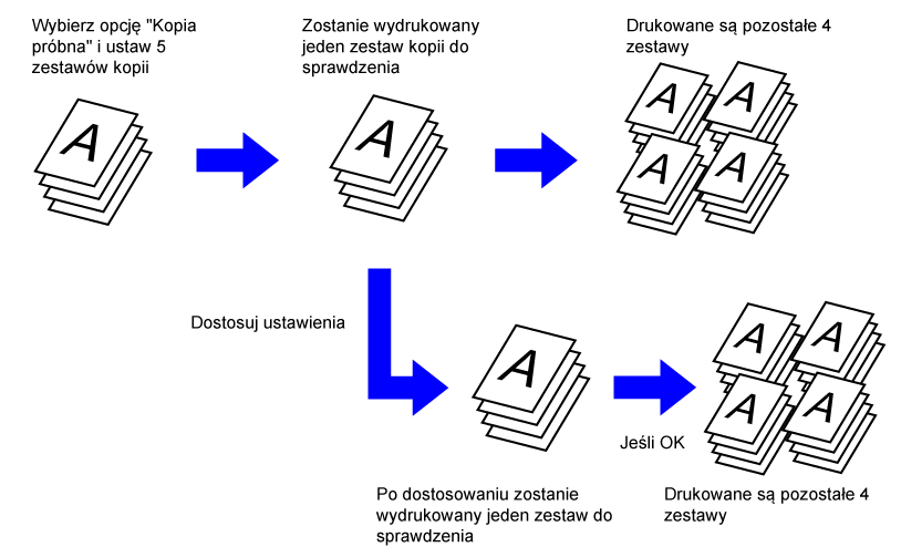 przed wydrukowaniem określonej liczby kopii. Porównaj kopię próbną z