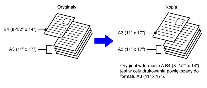 A3 (11" x 17"), wówczas oryginał w formacie B4 (8-1/2" x 14") jest