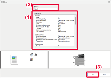 pod wybraną nazwą często używanych ustawień lub złożonych ustawień