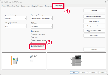 Opis ustawień można znaleźć w pomocy sterownika drukarki.Jeśli urządzenie będzie używane jako drukarka