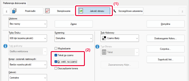 Wybierz, czy czarne obszary mają być drukowane wyłącznie czarnym tonerem. |