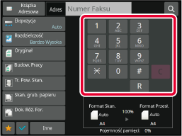 Ułóż oryginał na tacy automatycznego podajnika dokumentów lub na szybie dokumentów.Wprowadź numer faksu odbiorcy.