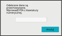 • Podczas przesyłania otrzymanych danych do drugiego urządzenia dane przechowywane w pamięci są również przesyłane. W takim przypadku na wyświetlaczu pojawi się taki sam ekran wprowadzania kodu PIN jak w przypadku drukowania. Dokumenty zostaną przekazane dopiero po wprowadzeniu kodu PIN.