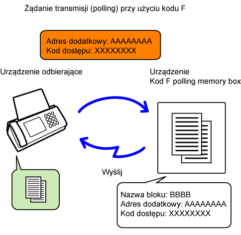 z użyciem kodu F faks jest przechowywany w bloku pamięci określonym przez